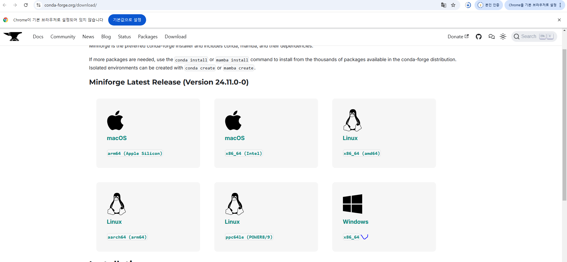 - 최소한의 기능(가상환경+python)만 필요하다면 miniforge: https://github.com/conda-forge/miniforge